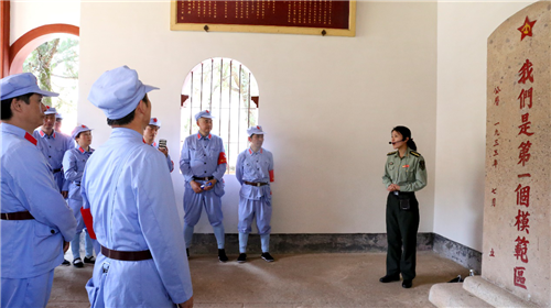波澜壮阔的革命历史给长汀留下了许多感人的红色故事,也给长汀留下了许多彪炳史册的第一——“红四军入闽的第一枪”“红四军第一次统一军服”“第一所红军医院”“第一个省级苏维埃政权”……一张张展板,就是当年先辈们一个个坚实的足迹,学员们久久驻立,在穿越历史的对望中沉浸在先辈们的伟大精神里。
