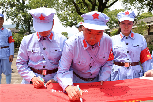 才溪,是毛泽东心中的温暖。在那段惆怅的岁月里,他只能置烽火硝烟于身外,在热火朝天的苏区乡村寻找革命的动力与源泉。他曾前后三次下才溪亲手培育了这个苏区的“模范区”,再一次用行动证明“没有调查没有发言权”的真理。在毛泽东光辉思想的指引下,从光荣亭、才溪乡苏维埃政府旧址到毛泽东才溪乡纪念馆,学员们一步步走进彪炳史册的《才溪乡调查》,去寻找那些消逝的历史,去颂读才溪那些光荣事迹,深刻体会在当年的历史条件下,探索治党、治军与治国道路的不易与艰辛。