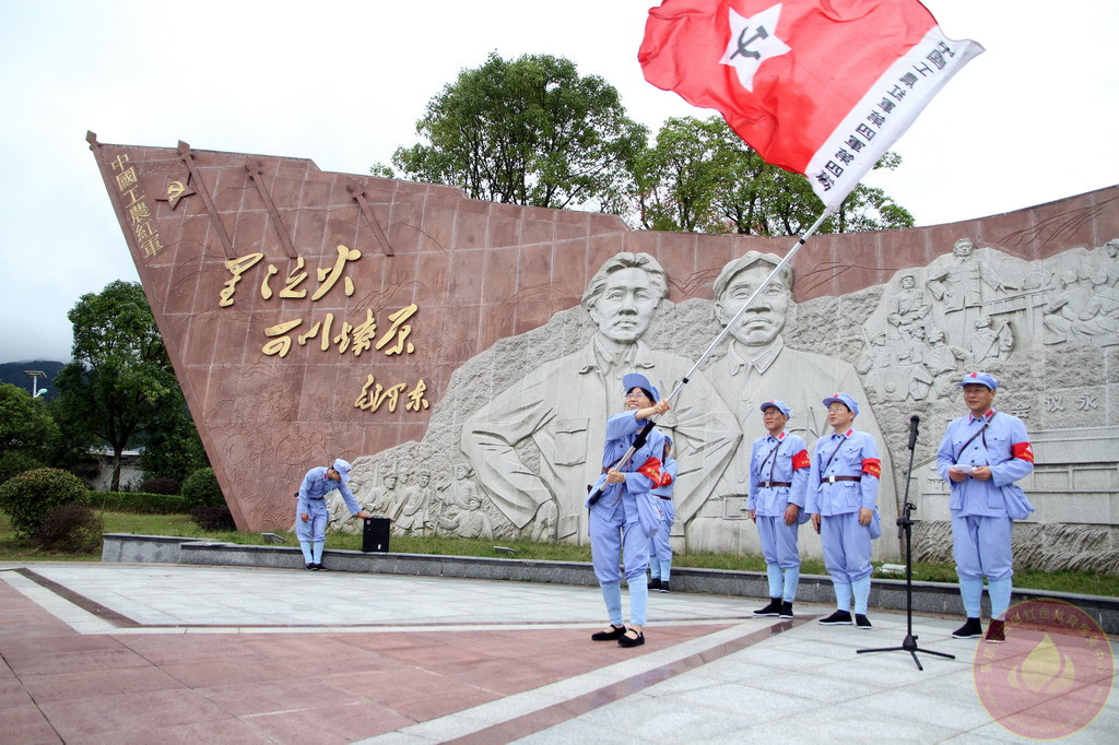 在纪念长征胜利80周年之际,学员们高举战旗奔赴当年红军长征的零公里处——中复村,那条连接着红军桥与观寿公祠的青石小路和80多年风雨飘摇依然屹立的廊桥仿佛在无声的诉说着:80多年前,一个年轻的政党,带领一支年轻的军队,告别父老乡亲,告别红土家园,从这里迈出战略大转移的第一步。他们坚信一定会回来,无论走多远。此一别,“雄关漫道真如铁,而今迈步从头越”,他们走过滔滔激流,走过皑皑雪地,走过茫茫草地,走过漫漫长夜,野草皮带都是军粮,万里长征不过是一步一步的丈量,这趟远征持续了700多个日夜,这条血路每1公里就有4名战士倒下,我们无法知晓那些英烈的名字,但英雄壮怀,物在,心在,山河在。我们最终听到了会师的凯歌,看到三军开颜,山河共舞。我们坚信生活早已不是当年的艰苦,只是理想、奋斗与坚持是传承的信仰,每一代人有每一代人的长征,相信,当长征壮行出发仪式上,火炬点燃的那一刻,涌上学员心头的是使命,是奋斗的豪情壮志,传承先辈遗志,学员们会走好我们这一代人新的长征路。