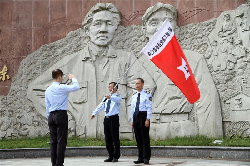 授旗仪式上,那面鲜红的旗帜不仅代表着革命,更意味着传承